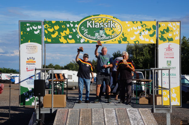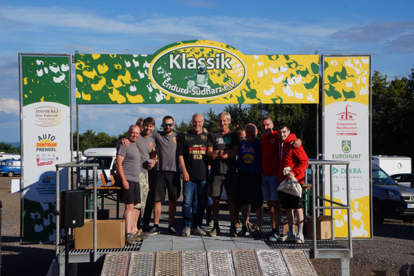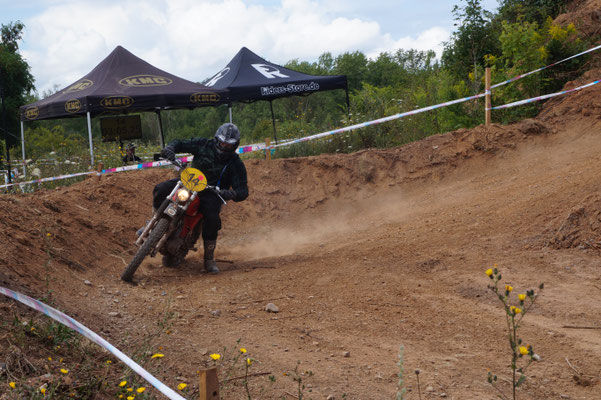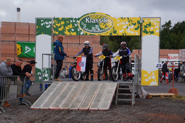 Am 02.08. war es wieder soweit, einige der besten Klassik-Endurofahrer kamen zu uns nach Nordhausen ins Ziegelwerk um ein tolles Endurorennen zu bestreiten und Ihre teils liebevoll restaurierten Maschinen zu präsentieren. Unser kleiner Verein konnte in den letzten Wochen auch Dank vieler externen Helfer (vielen Dank an dieser Stelle Jungs) wieder eine hervorragende Strecken kreieren. Ich weiß schon gar nicht mehr wie oft wir dieses Jahr vollkommen durchnässt von den Arbeitseinsätzen nach Hause kamen. Die Wetterprognose war für den Renntag auch alles andere als gut aber wie sich dann herausstellte hatte der Wettergott doch Mitleid mit uns und die Wolkendecke riss auf. So war es zwar in der ersten Runde noch etwas Rutschig aber dann wurde der Boden sogar fast perfekt griffig, so dass sehr schnelle Zeiten gefahren wurden. Leider gab es auch zwei Verletzungen die aber zügig medizinisch behandelt werden konnten. Das Catering für dieses Jahr übernahm ein befreundeter Dart-Verein " Ilfeld Bulls United e.V. " der uns damit sehr geholfen hat (vielen Dank). Auch sehr bedanken müssen wir und bei der " Agrar Gesellschaft Bucholz mbH " und der " Agrargesellschaft Harzungen mbH " die noch quasi in den letzten Minuten vor dem Rennen die Felder abmähten was vorher aufgrund des ständigen Regens nicht möglich war. Somit war alles bereitet und wir konnten ohne Hindernisse starten. Ein großes Dankeschön auch wieder an die Männer der "Dekra-Nordhausen", vielen Dank. Natürlich nicht zu vergessen alle "Sponsoren und Förderer" die auf unserer Internetseite zu finden sind und auch ein großes Dankeschön an die Helfer der Feuerwehren aus "Harztor" und "Petersrforf", auch wieder am Start die "Johanniter- Unfall -Hilfe e.V." vielen Dank. Weiterer Dank an alle die ich vergessen habe.